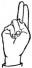 На ћирилици написано ИРЕНА КРГА састоји се из 9 слова [?]. Исписано ћириличном једноручном азбуком за глувонеме: